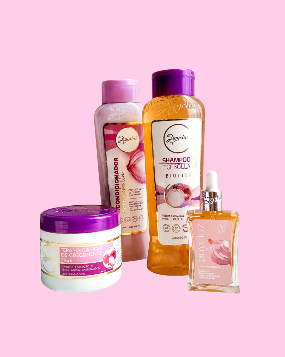 Recupera la salud, fuerza y brillo de tu cabello con el Kit de Cebolla Anyeluz, una rutina capilar completa ideal para prevenir la caída, combatir la caspa, estimular el crecimiento y revitalizar la fibra capilar. Su fórmula libre de sal y parabenos, enriquecida con cebolla roja, azufre, antioxidantes y extractos botánicos, está diseñada para todo tipo de cabello, incluso el de niños.