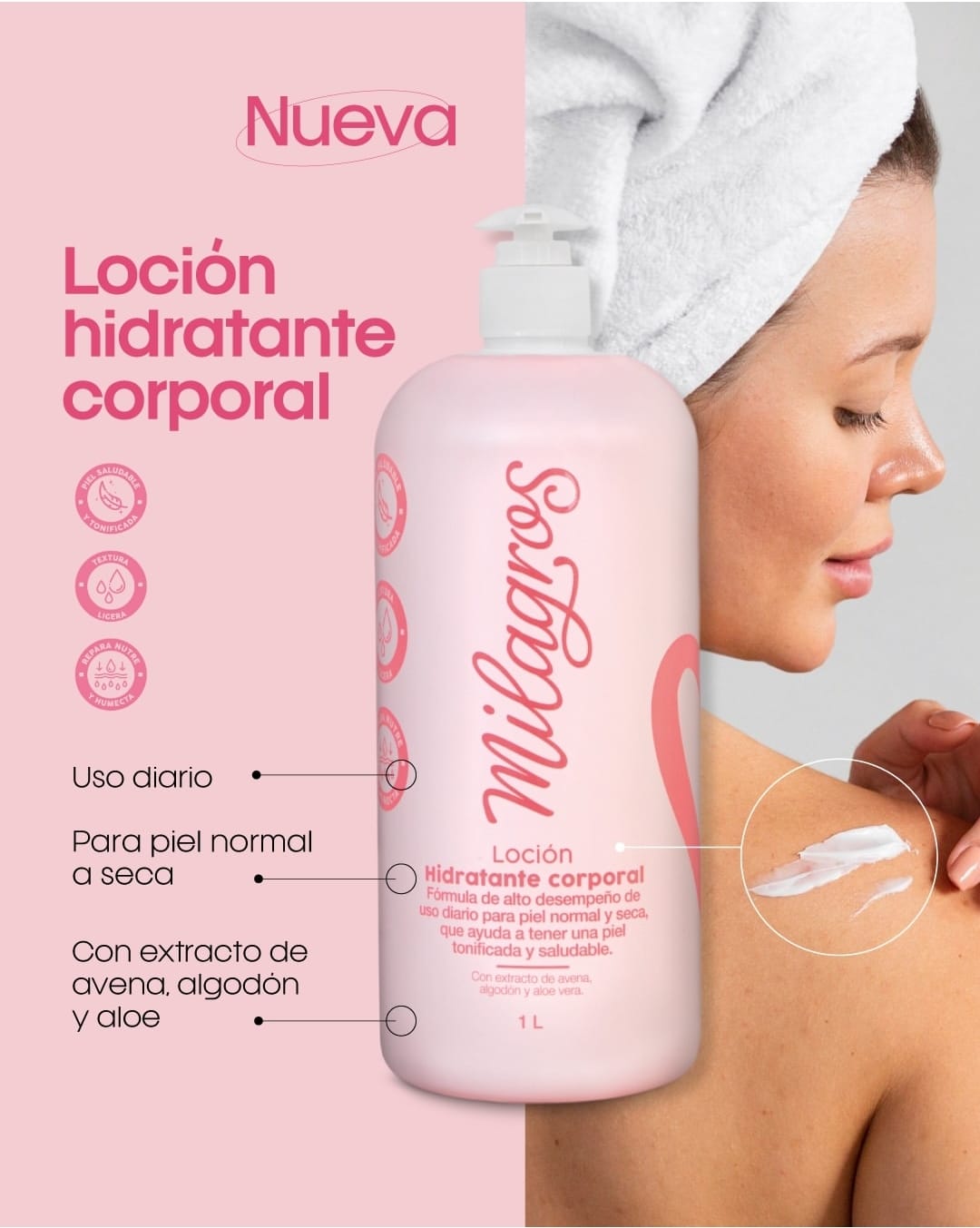 La Loción Hidratante Corporal Milagros es una crema de uso diario con fórmula de alto desempeño que deja la piel suave, tonificada y saludable.