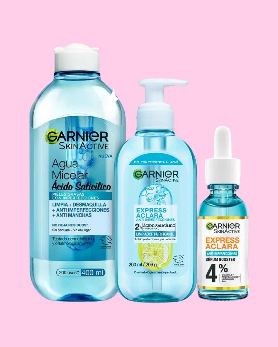 La línea EXPRESS ACLARA Anti-Imperfecciones con Ácido Salicílico es perfecta para quienes tienen piel grasa o mixta con tendencia al acné, puntos negros o imperfecciones.