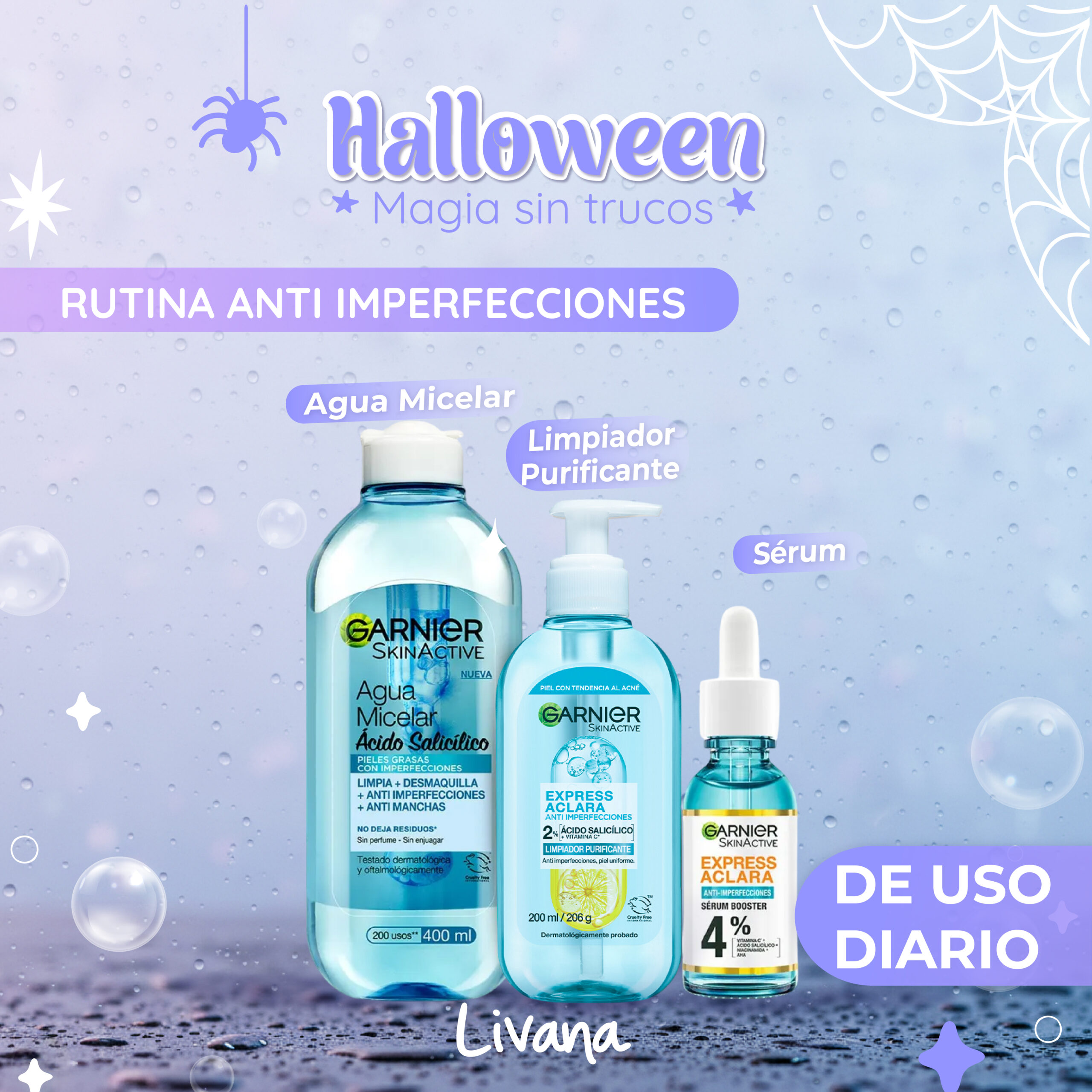 Finaliza tu rutina con el Sérum Express Aclara Anti-Imperfecciones, un tratamiento concentrado con Ácido Salicílico, Niacinamida y AHA + Vitamina C.