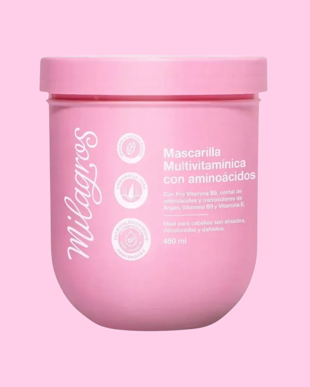 La Mascarilla Capilar Multivitamínica Milagros es un verdadero cóctel nutritivo para el cabello. Diseñada especialmente para cabellos alisados, decolorados y dañados, actúa profundamente ayudando a detener la caída y a fortalecer la fibra capilar desde el interior.