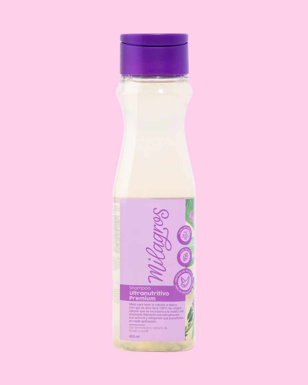 El Shampoo Ultra Nutritivo Premium (con Aloe Vera) de Milagros es un tratamiento de limpieza profesional que hidrata, fortalece y revitaliza el cabello desde la raíz hasta las puntas.